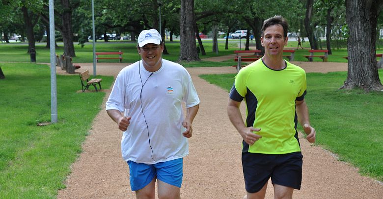 A Fehérvár Médiacentrum sportszerkesztőségének két oszlopos tagja, Kaiser Tamás és Somos Zoltán a Haleszben készül az idei TESZ futás munkahelyi váltójára.