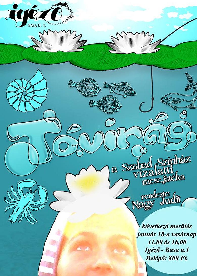 2015. január 18-án, vasárnap újabb kulturális programmal várja az érdeklődőket a fehérvári Igéző (Basa utca 1.). Nagy Judit rendezésében a Szabad Színház víz alatti mesejátékát tekinthetik meg a programra ellátogatók. A darabot délelőtt 11, valamint délután 16 órakor is játsszák. A Szabad Színház vasárnapi előadásain 800 Forintos jegy megvásárlásával lehet részt venni.