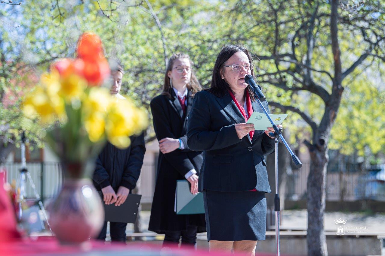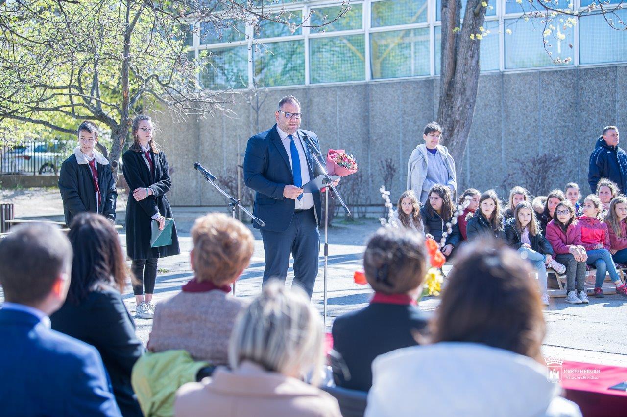 A Székesfehérvári Tankerületi Központ vezetője, Török Szabolcs a jubileumi évforduló és a költészet napja alkalmából József Attila: A számokról című versét ajánlotta a diákok figyelmébe. Utalva a vers üzenetére, a tananyag elsajátítása mellett fontosnak nevezte, hogy a diákok megtanuljanak csapatban dolgozni. A pedagógusokhoz fordulva Lukács evangéliumából idézett: „Akinek sokat adtak, attól sokat kívánnak, és akire sokat bíztak, attól többet kérnek számon.” Arra kérve őket, a mindennapokat ennek a jegyében éljék meg, hiszen hivatásuk az ifjúság oktatása, nevelése. Deák Lajosné, a városrész önkormányzati képviselője köszöntőjében az együttműködésről, a közösen megvalósított programokról szólt, és reményét fejezte ki, hogy a jövőben is sok sikeres projektet valósítanak meg közösen.