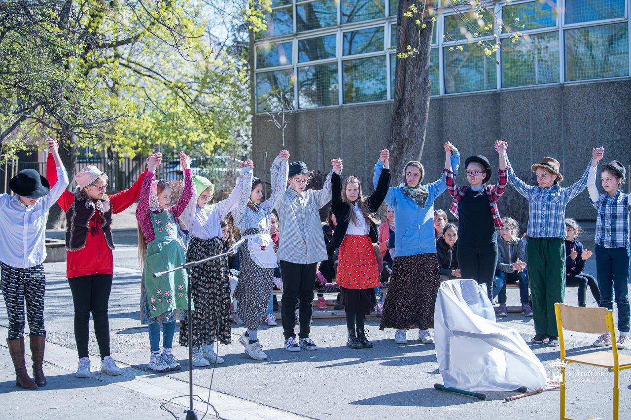 Az ünnepi beszédeket követően az osztályok nyújtották át meglepetésüket. Az iskola diákjai és pedagógusai együtt énekelték a Képzelt riport egy amerikai popfesztiválról jól ismert fináléját: „…arra születtünk, tiszta legyen még a szívünk, s játszunk még tovább, játszunk még tovább.”