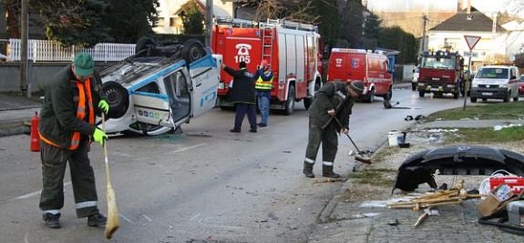 A Kassai utcában egy kisáruszállító borult fejtetőre hétfőn reggel a csúszós úton, úgy, hogy a jármű motorja is kirepült. A Volkswagen Caddy az elejével az út jobb oldalán lévő beton villanyoszlopnak csapódott, majd visszavágódott az útra. A sofőrt a tűzoltóknak kellett kiszabadítania a roncsok közül. A raktérben lévő szerszámok is több méteres körzetben szóródtak szét, és megrongálták egy családi ház kerítését.