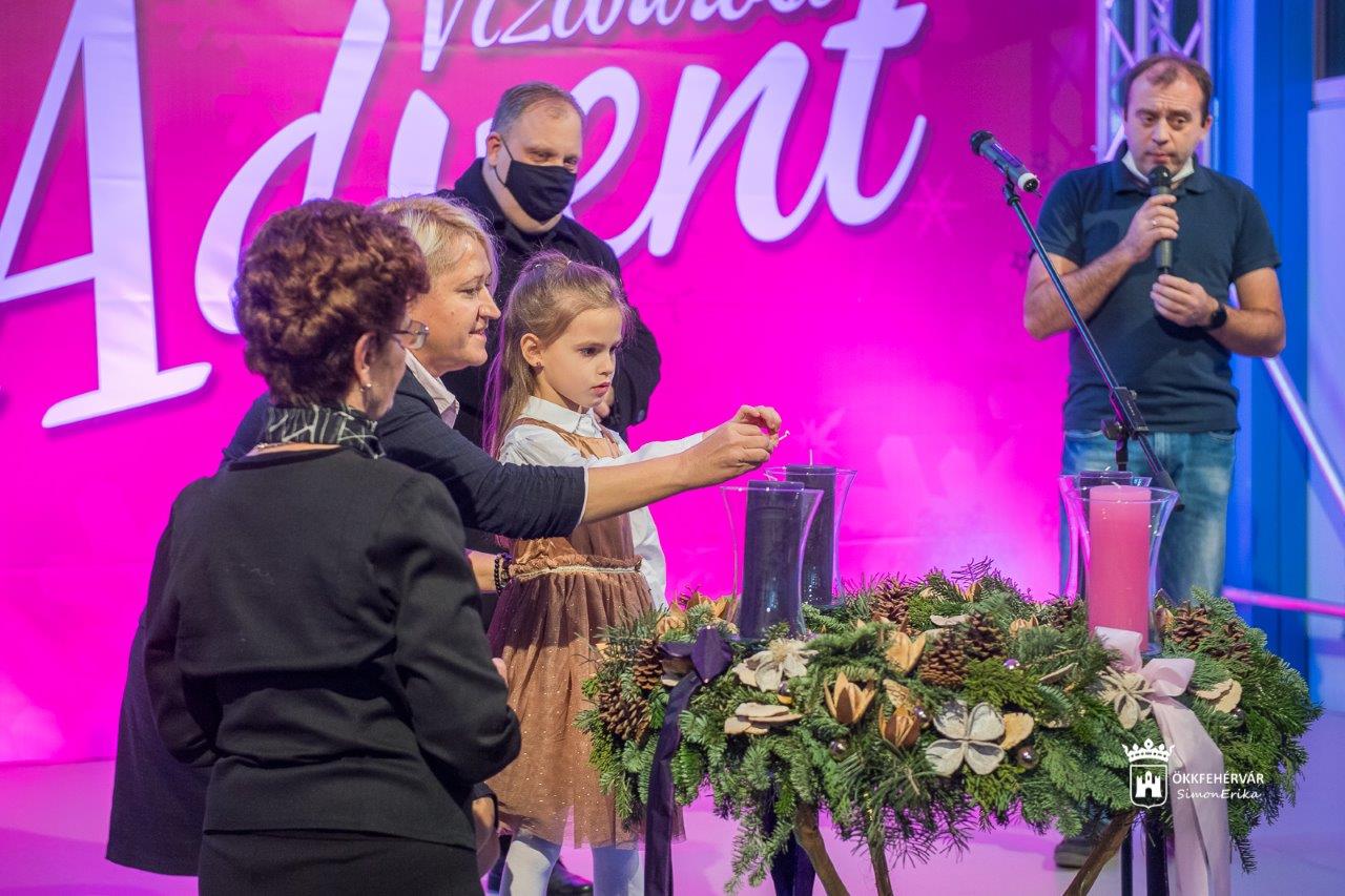 Az idén a szokásos négy adventi szombat helyett három alkalommal rendeznek programokat, mivel a december 11-i szombat munkanap, ezért a harmadik és a negyedik hétvégén esedékes programokat összevonták. Az első gyertyagyújtás alkalmával a Hétpettyes Óvoda nagycsoportosainak műsorát láthatta Holdapó és a kíváncsi kiscsillag címmel a vízivárosi advent közönsége, majd Girbe-gurba fenyőfa címmel a Hétvezér iskola 2.B osztályának műsora következett. Ezt követte az Arany János Óvoda, Általános Iskola, Speciális Szakiskola és EGYMI ünnepi összeállítása, valamint a Széna Téri Általános Iskola 2.B osztályának előadása. Az első adventi alkalom ünnepi műsorát a Nosztalgia Nyugdíjas Klub fellépése zárta.
