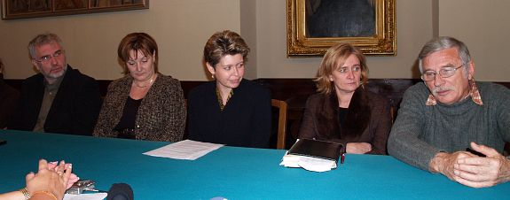 A képen Koroknay Károly, J. Mező Éva, dr. Csapó Csilla, Brájer Éva és dr. Banizs Károly láthatók a film sajtótájékoztatóján.