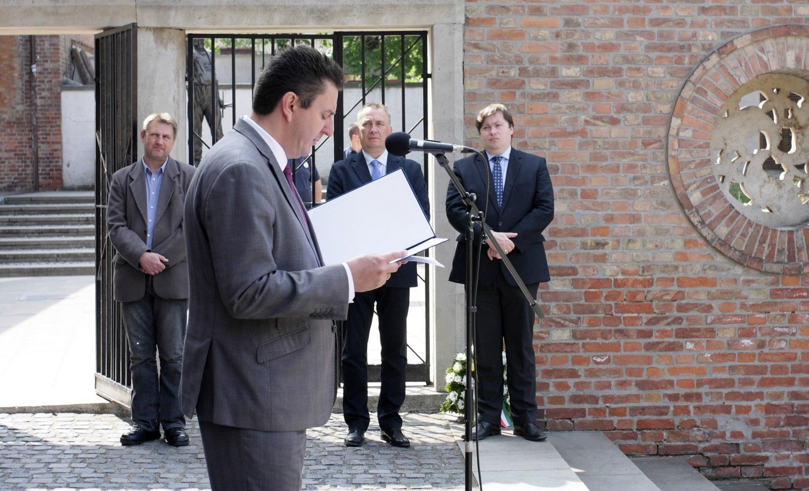 "Székesfehérvár a másfél évszázados török hódoltság után, azok kiűzésével tudott visszacsatlakozni a nyugati civilizációhoz, amiből az oszmán-török uralom kiragadta. A török kiűzése után romok maradtak csupán az egykori pompás városból. A város egyetlen épségben maradt középkori épülete az 1470 körül épült Szent Anna kápolna, melyet a törökök imaházként használtak. Bár épületek nem őrzik a múltat, felednünk nem szabad a hódoltság időszakát. Az emlékezésnek elődeink is fontos szerepet szántak: Varkocs várkapitány dicső emlékét Erdey Dezső alkotása őrzi, a Prohászka ligetben láthatjuk Wathay várkapitány életnagyságú bronzszobrát és a Medgyessy Ferenc által készített Török kút is a hódoltságra emlékeztet. Mindhárom alkotás ünnepélyes avatására 1938 május 19-én került sor a török alóli felszabadulás 250. évfordulóján." - mondta el beszédében a Székesfehérvári Járási Hivatal vezetője.