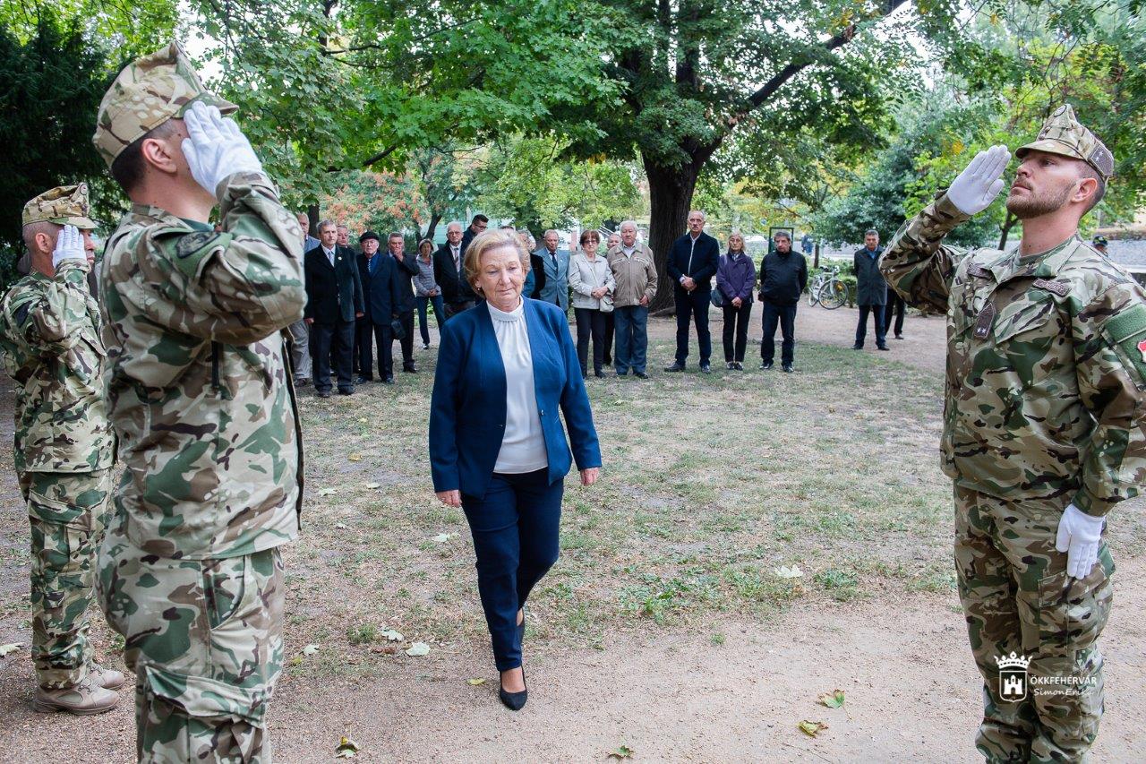 Az ünnepi műsort követően Székesfehérvár Önkormányzata nevében Szabó-Bakos Györgyné önkormányzati képviselő helyezett el koszorút a megemlékezés keretében a Wathay szobor talapzatánál.