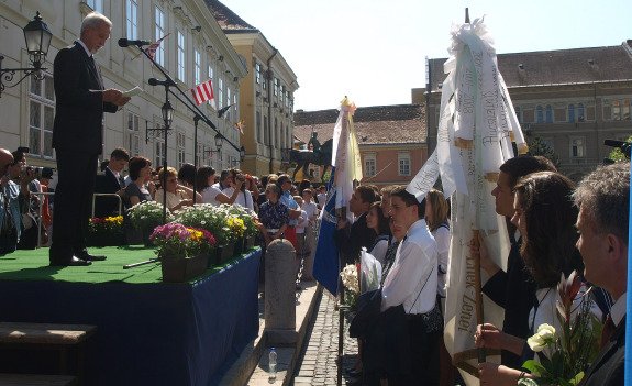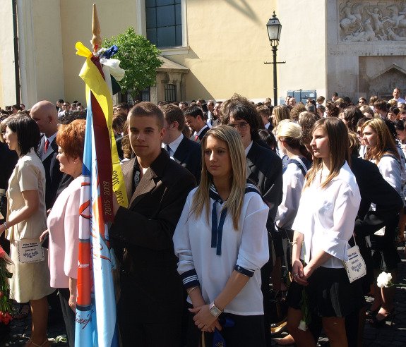 Ünnepi beszédében Székesfehérvár polgármestere a közelgő anyák napjáról is megemlékezett, kiemelve, hogy az édesanyák számára a legnagyobb örömet azzal szerezhetik a diákok, ha megállják a helyüket az életben. A központi ballagáson a végzős diákok felkötötték a város zászlajára búcsúszalagjukat.