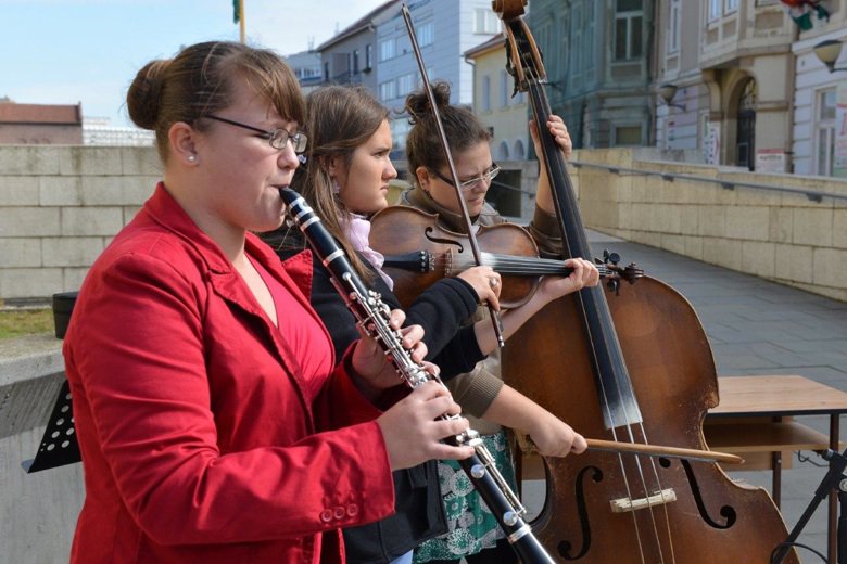 A Városház téren muzsikáltak a hermannos diákok a Zene Világnapján