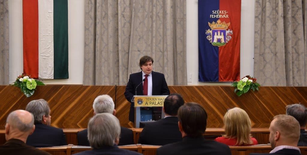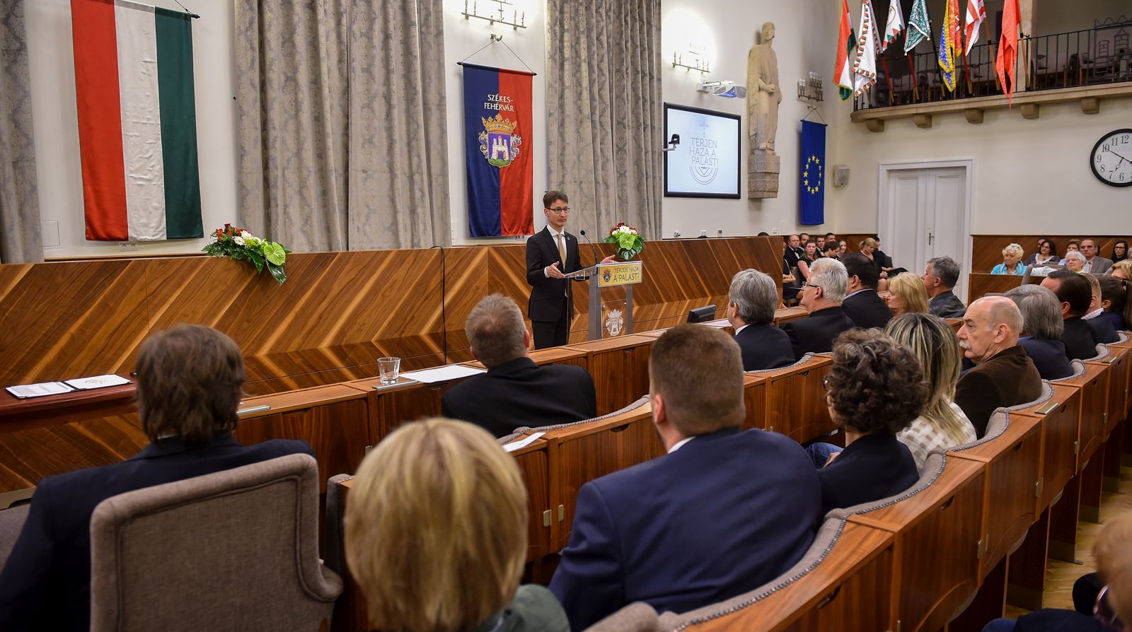Dr. Cser-Palkovics András polgármester ünnepi beszédében a zeneművek és az elhangzott legendarészlet emelkedett, mély lelkiséggel áthatott hangulatában a Közgyűlés egyhangú szavazatára reflektálva köszönetet mondott a képviselők támogatásáért: „Hitet tettek amellett, hogy a legfontosabb a városunk iránti szeretet, a tisztelet és a közös felelősség felvállalása. Történelmi jogon megilleti Székesfehérvárt a koronázási palást. Fontos azt is hozzátennünk, hogy ez egyben felelősséget is ró ránk: ez fontos a mai estén és az lesz az elkövetkező években, hónapokban is, amikor meggyőződésem szerint sokan támogatják ezt a kezdeményezést a nevük vállalásával. A nem mindig könnyű mindennapokban kell, hogy legyenek olyan szimbólumaink, amelyek segítenek bennünket. Úgy érzem, hogy a koronázási palást és annak Székesfehérváron történő elhelyezése ebben a lelkiségben erősíthet meg bennünket, és könnyebb vagy nehezebb időkben ez lehet az a fogódzó, amihez vissza tudunk kapcsolni, amiből erőt tudunk meríteni – tudatosan vállalva a történelmi jogot és felelősséget.”