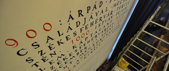 A feliratok a ’38-as évre készültek, majd elpusztultak, a város önkormányzatának kezdeményezésére a 2013-as ünnepi emlékévre teljes egészében újrafestik a tablót. A Városháza látogatói megtekinthetik továbbá Aba Novák Vilmos alkotásait és a polgármesteri irodát is. Az idegenvezetéssel egybekötött városházi séták 18.00 órakor indulnak, az utolsó csoportot 21.30 órakor indítják.