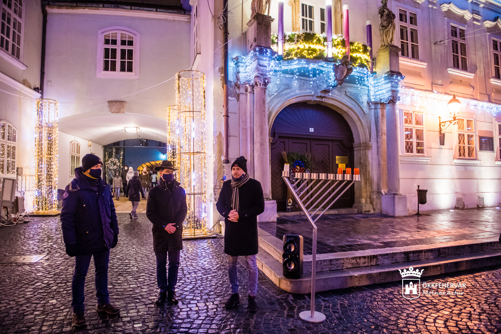A nyitott kapu Székesfehérvár címerében a befogadó várost jelképezi, a különböző értékek és kultúrák befogadását, a hozzájuk tartozó ünnepekkel, mondta dr. Cser-Palkovics András polgármester: „A fényről, a szabadságról szóló ünnepet, a fénnyel járó világosságot, a vidámságot ebben az esztendőben különösen fontosnak tekinthetjük – ami kedves az Úrnak, és örömet okoz, nyújt és üzen az embereknek. A gyertya mindenkinek szól, aki nyitott ezekre az értékekre, nyitott a fény üzenetére.” A polgármester sajnálatát fejezte ki, hogy idén nincs mód a zsidó kulturális fesztivál megrendezésére, de a hagyomány ettől nem törhet meg, fogalmazott, és szép ünnepet kívánt a közösség nevében minden embernek a világon.