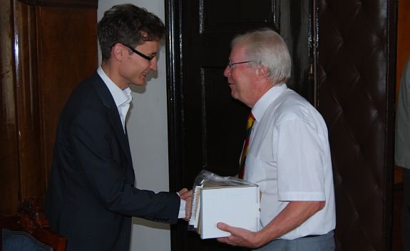 Székesfehérvár tiszteletbeli polgárát Alan Whittakert fogadta a Városházán dr. Cser-Palkovics András Székesfehérvár polgármestere. Városunk tiszteletbeli polgára biciklivel indult május elején testvérvárosunkból az angliai Chorley-ból. 34 napot kerekezett Európán keresztül, indulása óta több mint 2200 kilométert tett meg. Kora délután pedig az angol műfordítói pályázat diákjait köszöntötte tiszteletbeli polgárunk.
