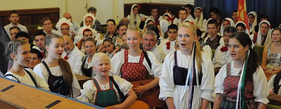 A délelőtti fogadáson valamennyi résztvevő csoport ízelítőt adott országának zenei kultúrájából. Néhány perc erejéig bepillantást nyerhettünk Costa Rica, Franciaország, Spanyolország, Finnország, Macedónia és Grúzia hagyományaiba is.