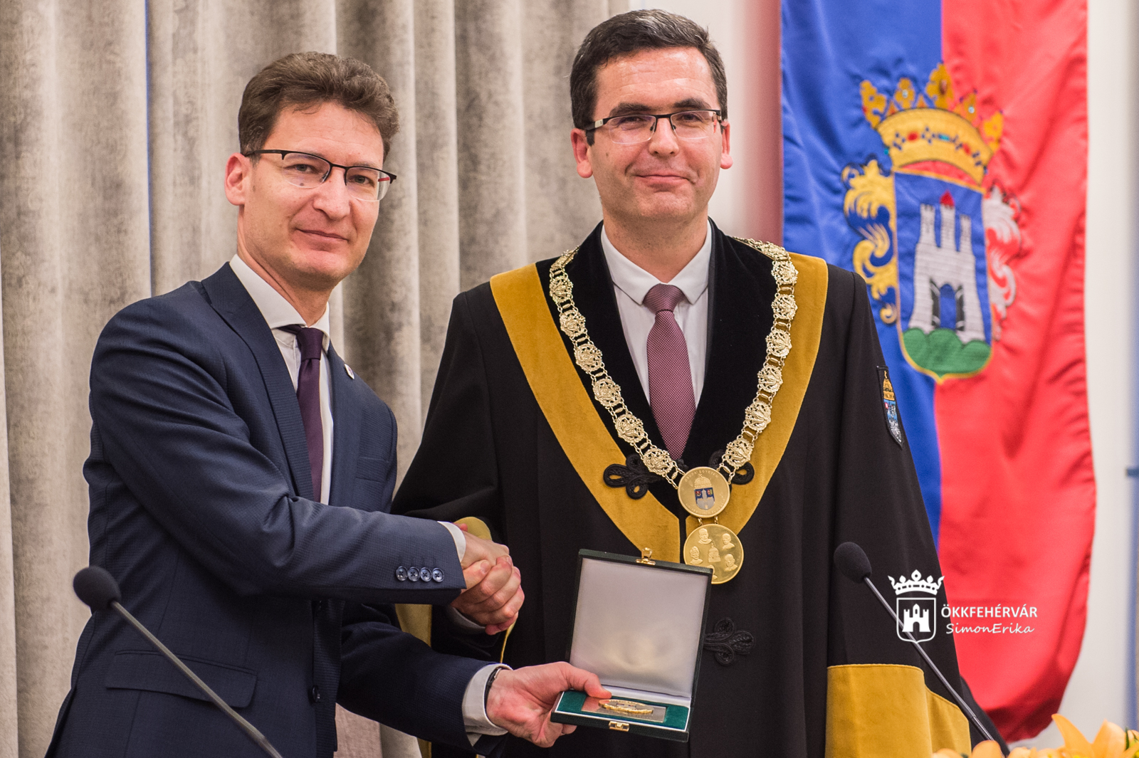 Székesfehérvár polgármestere ünnepi beszédében megtiszteltetésnek nevezte, hogy az egyetem a Díszteremben rendezte meg ünnepi szenátusi ülését. Szólt arról, hogy az oktatásnak, azon belül is a felsőoktatásnak óriási szerepe van egy város és térségének életében. Dr. Cser-Palkovics András úgy fogalmazott, az Óbudai Egyetem és Székesfehérvár együttműködése történelmi jelentőségű, hiszen évtizedekre nyúlik vissza, és egyben baráti is, mert az egyetem számos alkalommal hozott a város számára kiemelten fontos döntéseket. Erre a legjobb példa a Geoinformatikai Kar befogadása, melyet a város fontos gesztusként élt meg. „Akkor úgy éreztük, hogy az Óbudai Egyetem stratégiai–baráti együttműködő partner, akire számíthatunk akkor is, amikor könnyebb, és akkor is, amikor nehezebb időket élünk!” – emelte ki a városvezető. Azóta ez az együttműködés egyre szorosabbá vált, melynek ma már látjuk az eredményeit, többek között azt, hogy évről évre növekszik a jelentkezők száma.