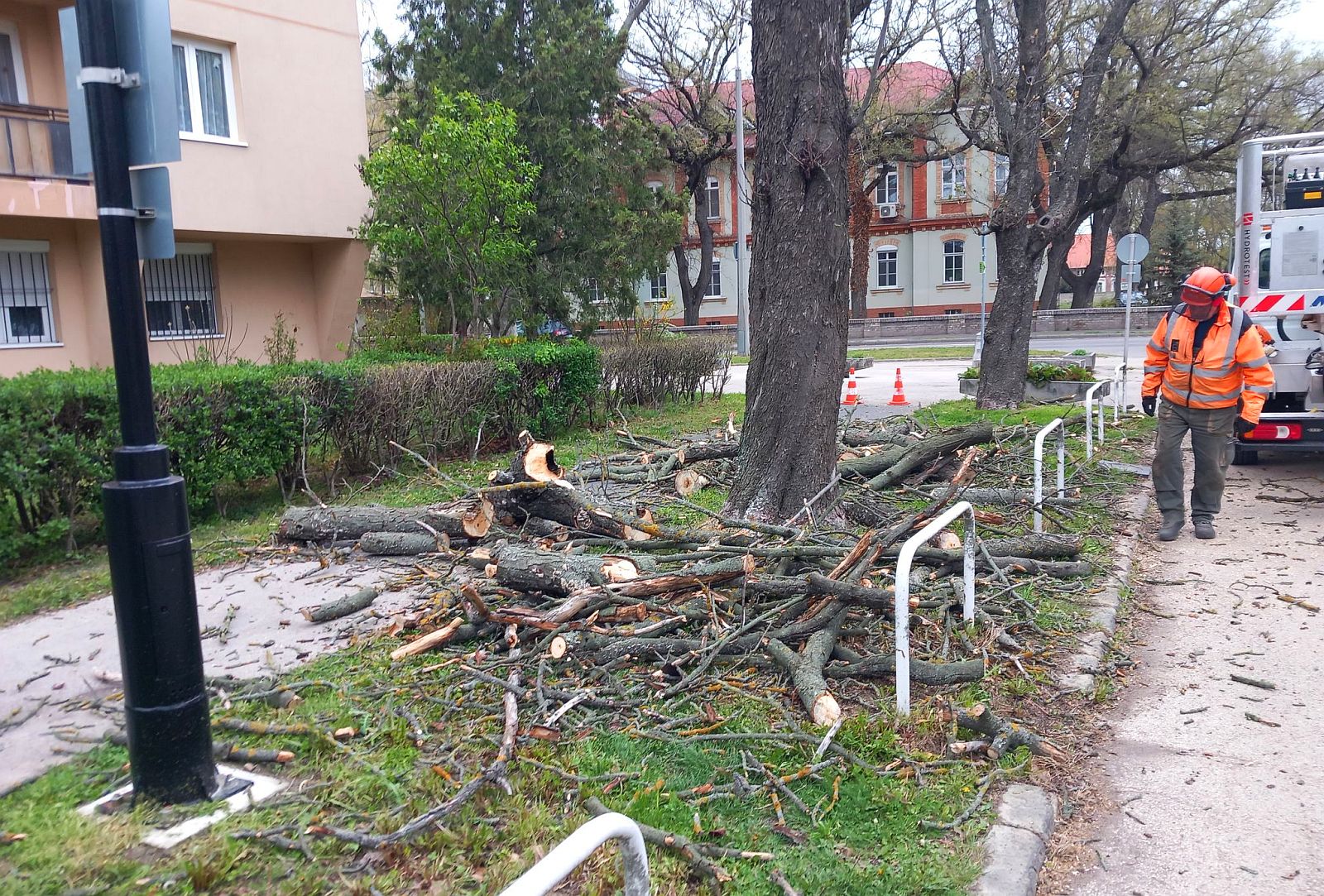 A viharos szél városszerte adott munkát a Városgondnokság parkfenntartóinak