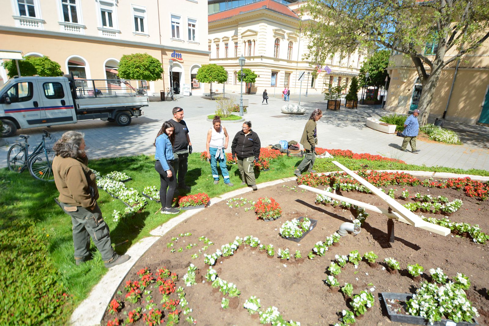 A belvárosi virágágyásokat követően a Strandon, a Zichy ligetben, a Szent István téren, a Halesz sarkánál az 1888-ban, közadakozásból emelt székesfehérvári vértanúk emlékoszlopa előtt és a Petőfi parkban folytatódnak a virágültetések. A munka több héten keresztül tart és több mint húszezer tő egynyári palánta kerül ki a közterületekre.
