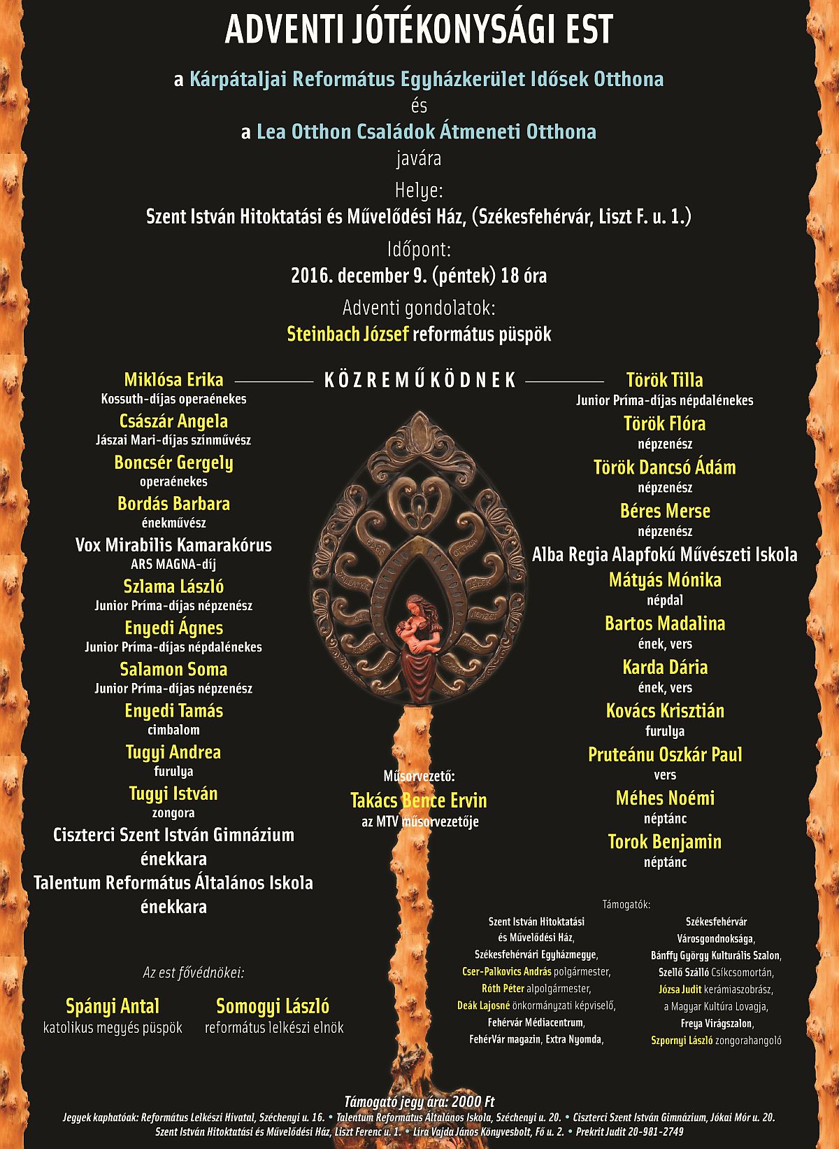 Õk huszonnégyen lesznek azok, akiket Székesfehérvár polgármestere is köszönteni fog az ittlétük alatt a Városházán. A határon túlról érkezők részt vesznek azon a jótékonysági esten is, melyet a Székesfehérvári Egyházmegye, valamint a Székesfehérvári Református Egyházközség szervez ugyanezen a napon 18 órai kezdettel. Az immár 11. alkalommal megrendezésre kerülő adventi koncert bevételét ezúttal a Kárpátaljai Református Egyházkerület Idősek Otthona, valamint a Lea Otthon Családok Átmeneti Otthona javára fordítják.