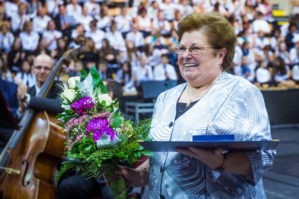 A méltatásban elhangzott, hogy Gottliebné Kálmán Terézia élete a gyermekek oktatása. 1978 óta tanított az Ének-zenei Általános Iskolában, majd jogutód intézményében, a Kodály Zoltán Általános Iskola, Gimnázium és Alapfokú Művészeti Iskolában. Tavaly augusztusban vonult nyugdíjba, közel negyven éven át volt meghatározó pedagógus egyénisége az iskolának, lelkiismeretesen, nagy odaadással, hittel végzett munkája példaértékű. Munkaközösség- majd szakszervezeti vezetőként sokat segített kollégáinak, ügyes-bajos dolgaikat is vállalva képviselte őket. Magas szakmai igényessége, precizitása, munkaszeretete, gyermekközpontú gondolkodása és módszerei tették kiváló pedagógussá.