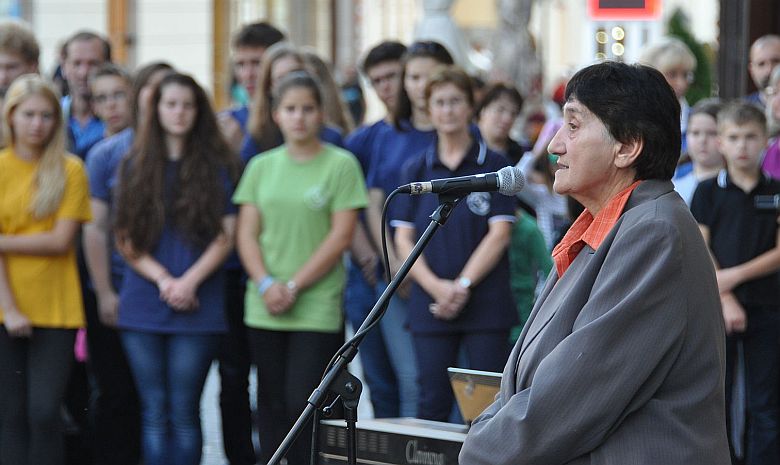 Az ünnepségen Horányi Ottilia énektanár, karnagy mondott emlékező beszédet. Az emléktábla avatón a Teleki Blanka Gimnázium Vegyeskara, Auth Ágnes vezényletével, Buzás Aida énekművész, Kolonicsné Sándor Zsuzsanna, zongoraművész, az Alba Regia Vegyeskar, Kneifel Imre vezérletével, Kiss Nikolett és Kiss Barnabás fuvolán, a Hermann László Zeneiskola növendékei és a Primavera Vegyeskar, Horányi Ottilia vezényletével muzsikált.