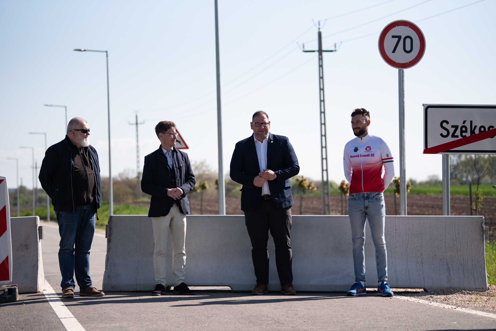 Nagy Zsolt, a Polgármesteri Hivatal Közlekedési Irodájának vezetője kiemelte, nem csak új utat, hanem kerékpárutat is építettek a teljes, mintegy 4 kilométeres szakaszon. Kiszolgálandó létesítmény hiányában járdák egyelőre nem készültek, a gyalogosok azonban használhatják a kerékpárutat a biciklisek akadályoztatása, zavarása nélkül. A járda helyét azonban biztosították arra az esetre, amennyiben később beépül az út térsége, és szükség lesz rá.