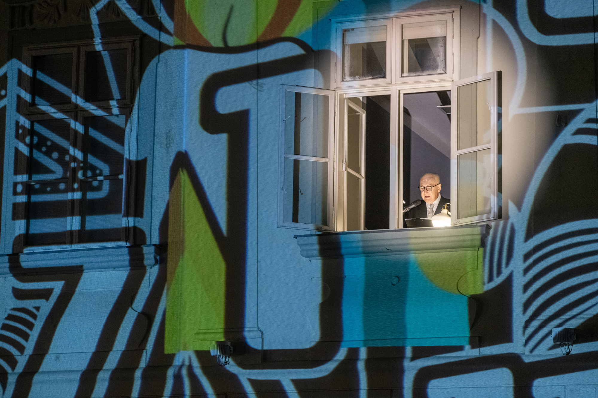 Szó szerint egy tűt sem lehetett volna leejteni a Városház téren vasárnap este: a gyülekezők izgatottan várták, hogy kinyíljon az adventi kalendáriumnak „öltözött” Városháza első ablaka, ahol Szikora János, a Vörösmarty Színház igazgatója olvasta fel Fekete István Roráte című novelláját.