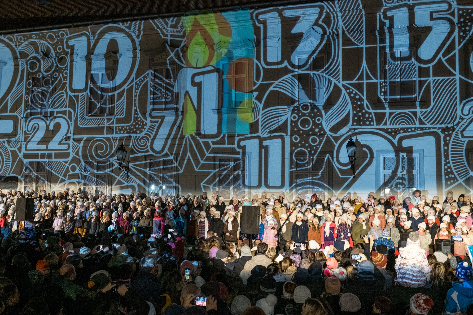 A szívet-lelket melengető dallamok után – hangos és izgatott visszaszámlálást követően – a látássérült Lengyel Zsófia esélyegyenlőségi referens és dr. Cser-Palkovics András kapcsolta fel a város karácsonyfájának fényeit, valamint a Városház teret betöltő új diszvilágítást.