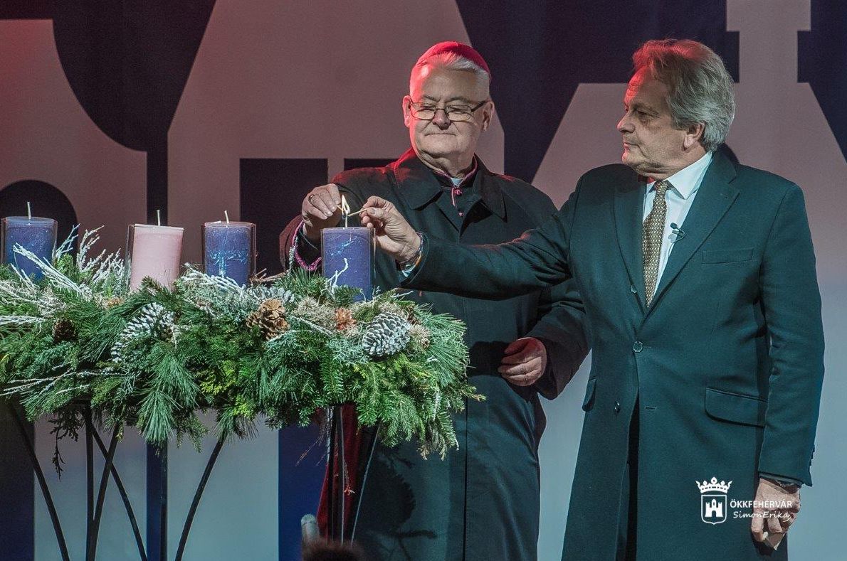A gyertyagyújtást megelőzően a Kisangyalok kara, 13 iskola több mint 600 diákja varázsolt karácsonyi hangulatot a Városház téren. A fehérváriak közösségét Vargha Tamás országgyűlési képviselő és Spányi Antal megyés püspök köszöntötte. „Ébresszük fel újra a szívünkben az Isten utáni vágyat, hogy megtaláljuk a békénket, megújuljon életünk.” – kérte az egyházmegye vezetője, aki hozzátette, az adventi időszakra készülődve ünnepi díszbe öltöztettük környezetünket, szívünket, lelkünket, hogy az ünnep igazi lényegére hangolódjunk. Arra biztatott, hogy tiszta szívvel, örömmel, békességben, boldogságban készüljünk az ünnepre.