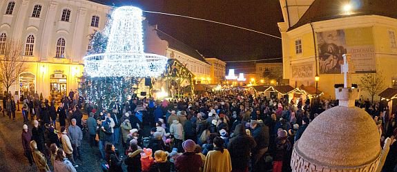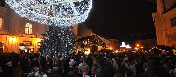 Advent első vasárnapján felkapcsolták a város új, ünnepi díszkivilágítását, köztük azokat a csillárokat, melyek a Városház téri karácsonyi vásár fölött ragyogják be a történelmi belvárost. Késő délután több százan voltak kíváncsiak az új, ünnepi fénypompára, de az idei első adventi hétvégére a vásár faházai is megszépültek: egységes elő- és oldalfalakat kaptak, és fehér fényfüzérekkel díszítették őket.