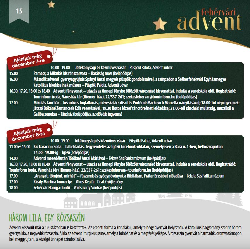 Advent második hétvégéje is sok programot kínál Fehérvár Belvárosában