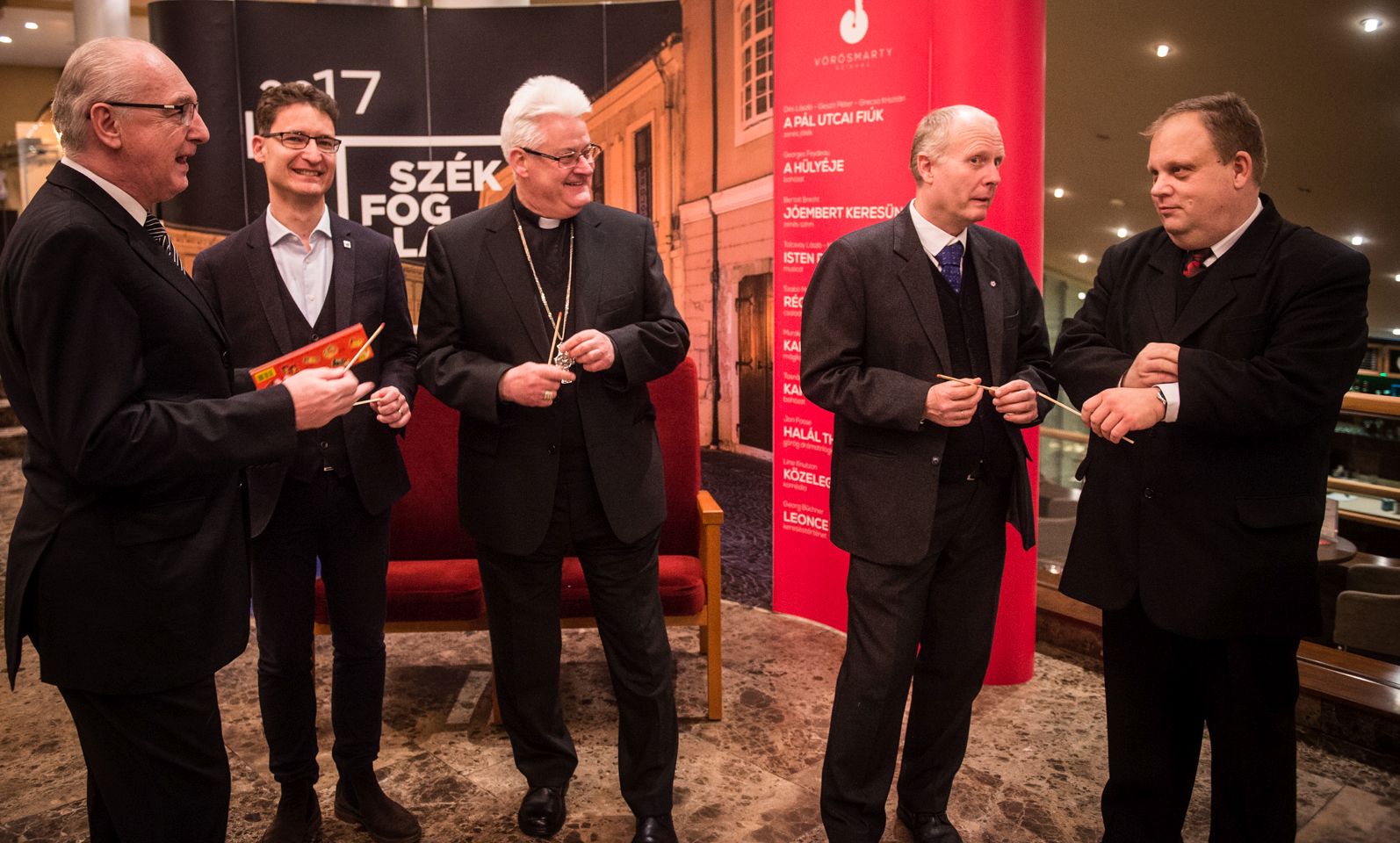 Szombaton este Spányi Antal megyés püspök, Bencze András evangélikus lelkész, Berze János református lelkész és dr. Szikora János színházigazgató közösen gyújtotta meg a teátrum előcsarnokában elhelyezett adventi koszorú első gyertyáját.