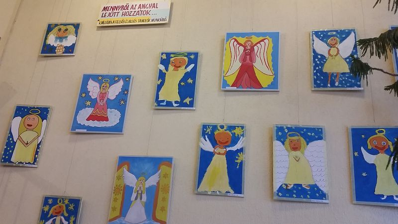A 424 gyermeket oktató Vasvári Iskolában kivételes volt a mai reggel, hiszen az az ünnepváró műsor keretében nyitották meg a „Mennyből az angyal lejött hozzátok…” című, az évfolyamok összefogásával készült festménykiállítást. Az angyalokat bemutató tárlatra valamennyi osztály készített egy-egy művet, így az egész iskola magáénak érzi a kiállítást. – hangsúlyozta Laczkó Gábor igazgató.