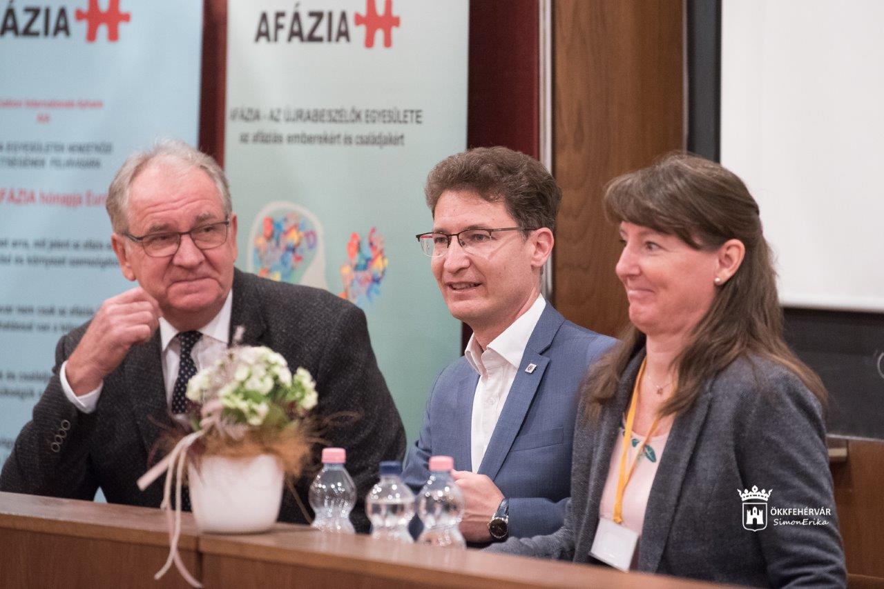 A köszöntőket követően dr. Kerényi Levente osztályvezető neurológus főorvos, a Székesfehérvári Beszédhibásokért Alapítvány képviseletében Gárdonyiné Kocsi Ilona projektvezető mesterlogopédus, az Afázia – Az Újrabeszlélők Egyesülete képviseletében Nagy Katalin Kitti vezető logopédus és Erdő Imre gyógyult afáziás beteg tartottak beszámolót.