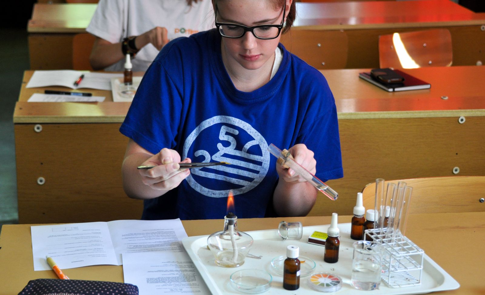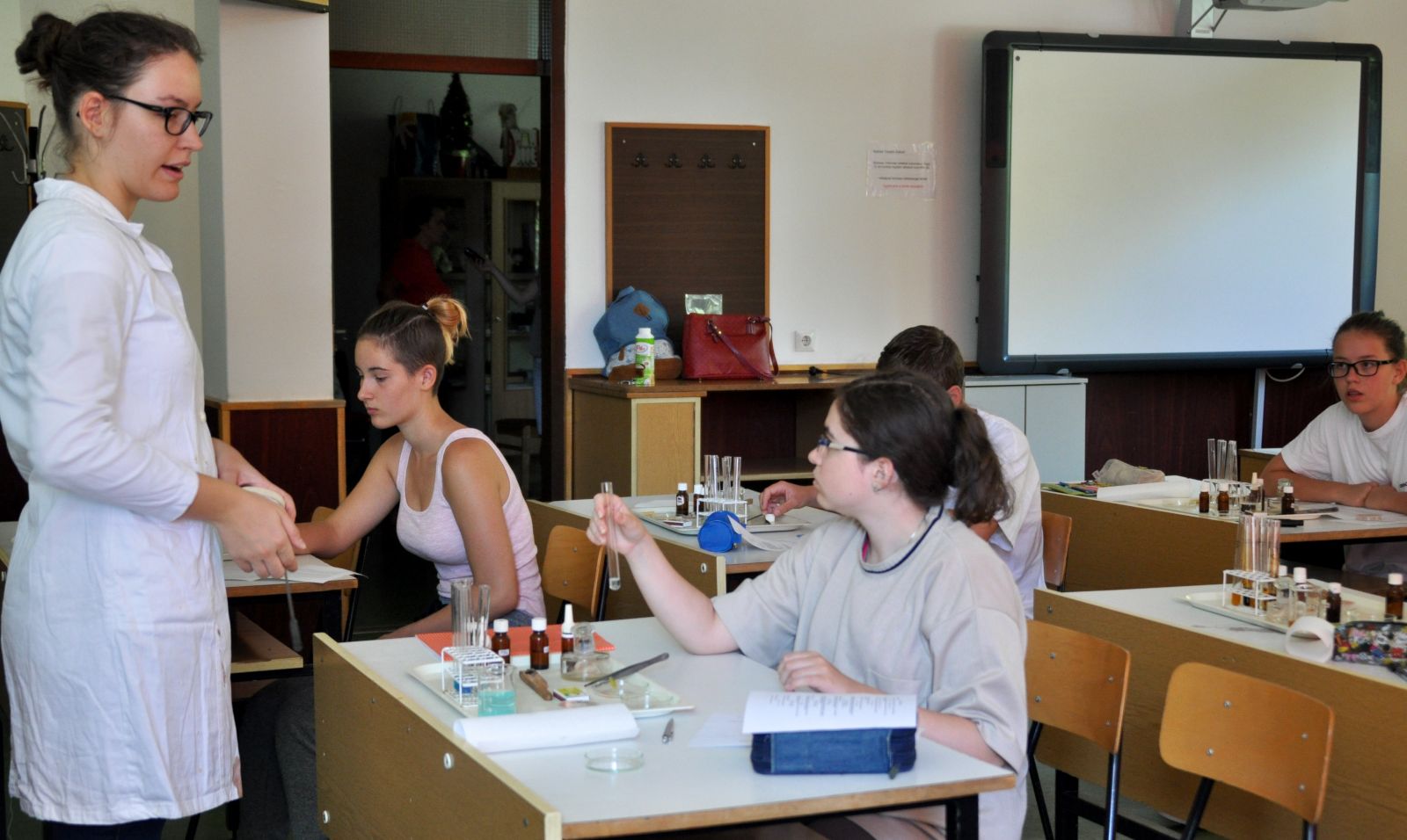 Müller Anna volt tópartis diák a Budapesti Műszaki Egyetemen tanul biomérnöki szakon, a szerda délelőtti foglalkozást ő vezette: „A szervetlen kémia gyakorlati részébe tekintettünk be, ionkeresést hajtottunk végre az aniont és kationt is tartalmazó ismeretlen oldatokkal, és színes reakciókat figyelhettünk meg. Készítettem hozzá egy feladatlapot a megfigyelések és tapasztalatszerzés ellenőrzésére, most éppen ezt töltik ki a diákok. Ide a táborba valóban az érdeklődők érkeztek: a lelkesedésük nagyon jól összekovácsolja ezt a kis csapatot. Figyelünk arra, hogy az előadások és a gyakorlat egyensúlyban legyen.”
