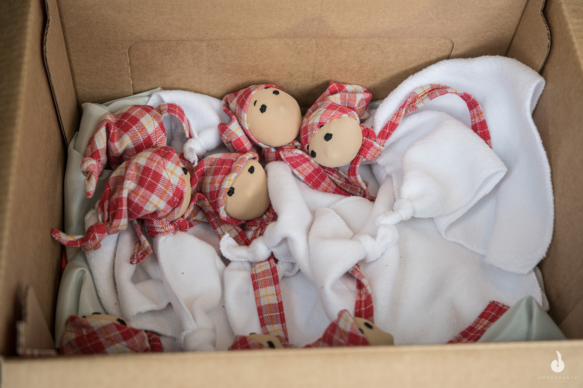 A teátrum munkatársai azon dolgoztak, hogy örömet szerezzenek a legkisebbeknek. A Vörösmarty Színház részéről Szikora János igazgató és Budainé Hajdu Mónika Kiszolgálótár-vezető adta át Kollárné Nagy Szilvia. mb. intézményvezetőnek az elkészült több mint 150 meglepetést, köztük manókat, maszkokat, fadíszeket.