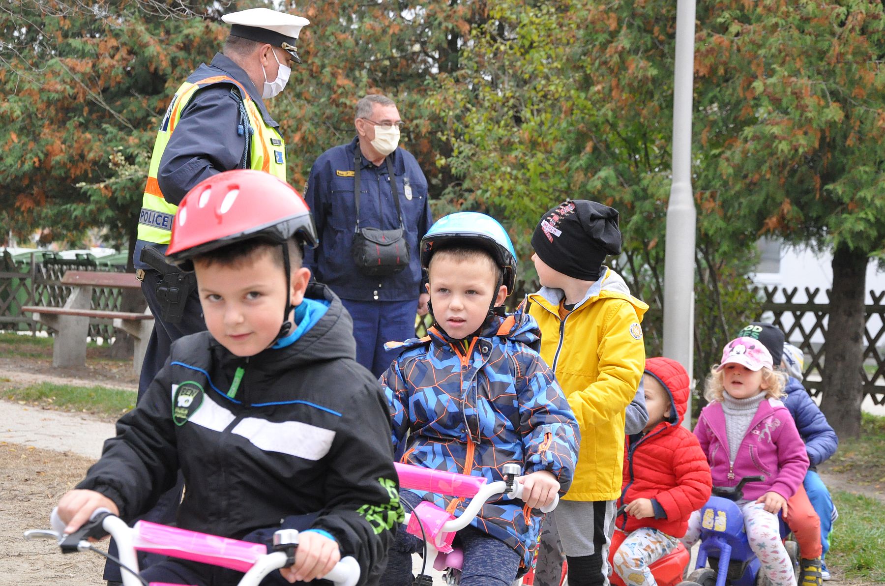 A Nyuszi és a Szívecske csoportba járó gyerekek máris kipróbálhatták a járgányokat az óvoda udvarán. Az instrukciókat Májer László rendőrszázados, a Székesfehérvári Balesetmegelőzési Bizottság titkára adta, aki számos intézményben és nyári táborban kapott már hasonló feladatokat, hogy megtanítsa a fehérvári gyerekeknek a balesetmentes közlekedést.