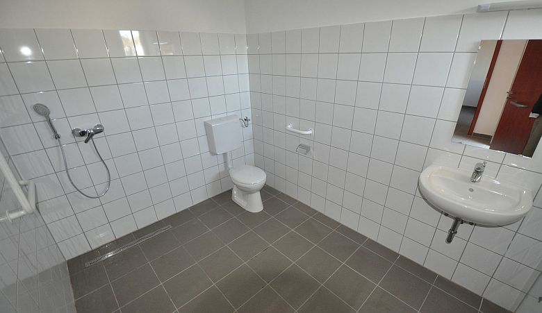 Mindegyik lakás az udvarra nyílik, ahol parkolók és a lakások előtt kisebb zöldterület van. Küszöb nélküliek a lakások: a bejárat tágas előszoba konyha helyiségbe nyílik, a fürdőszobák akadálymentesítettek és még az ablakok parapet magasságára is figyeltek a kialakításnál.