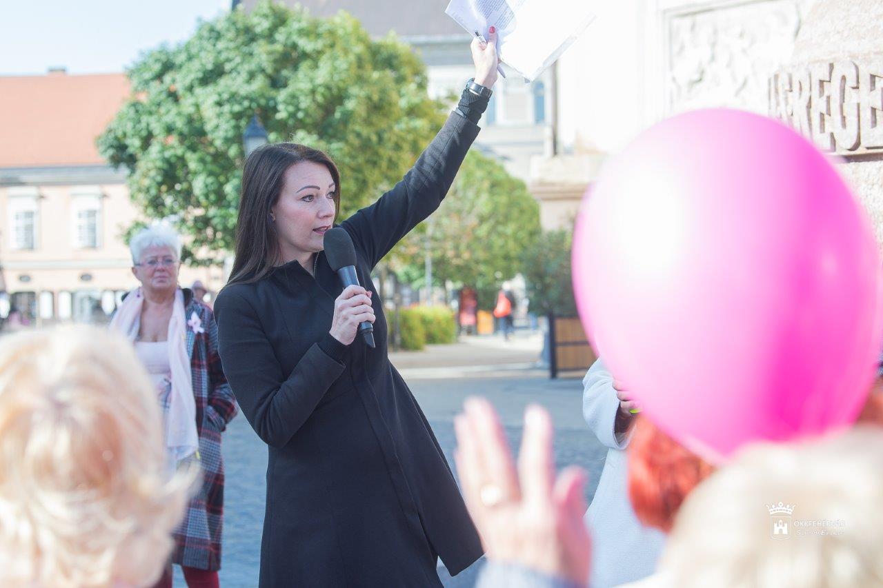 Az Országalma melletti sátrakban szakemberek adtak tanácsot a mell önvizsgálatáról, a mammográfiáról, de akár be is lehetett jelentkezni szűrésre. A megnyitó után a rózsaszín séta a Fő utca – Ady Endre utca – Liszt Ferenc utca útvonalon tért vissza a Városház térre.