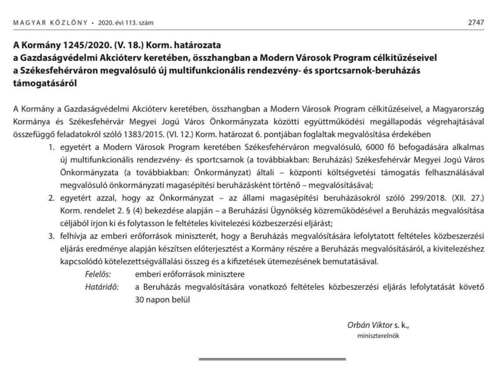 Aláírta a miniszterelnök a multifunkcionális csarnokról szóló kormányhatározatot