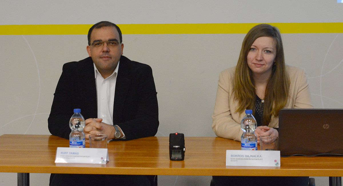 Ruff Tamás az Echo Szociológiai Kutatóintézet vezetője és Bokros Hajnalka az intézet kutatója közösen mutatta be az elemzés eredményét.