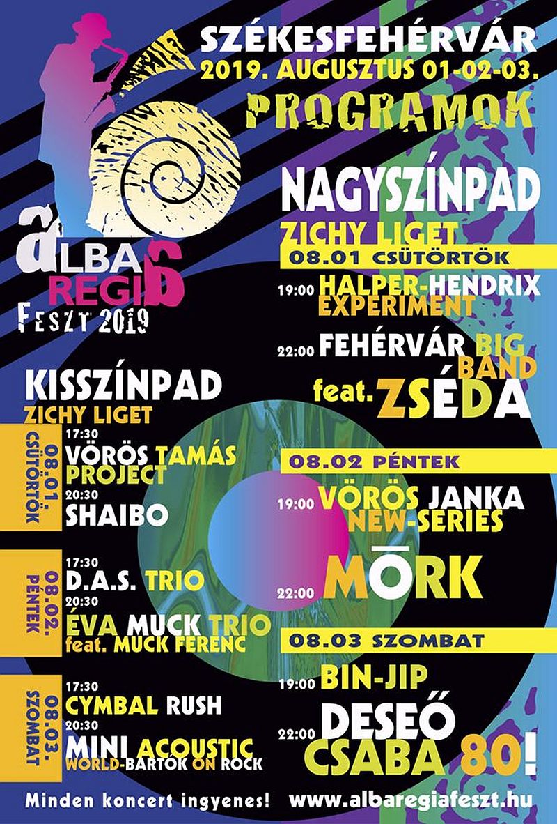 A magyar jazz-élet legendás alakja, a világhírű hegedűs Deseő Csaba idén februárban töltötte be 80. életévét; az alkalomból az Alba Regia Feszt-re egy ünnepi koncerttel készül szombaton. Előtte hazánk egyik legkülönlegesebb hangzású alternatív bandáját a BIN-JIP-et hallhatjuk.