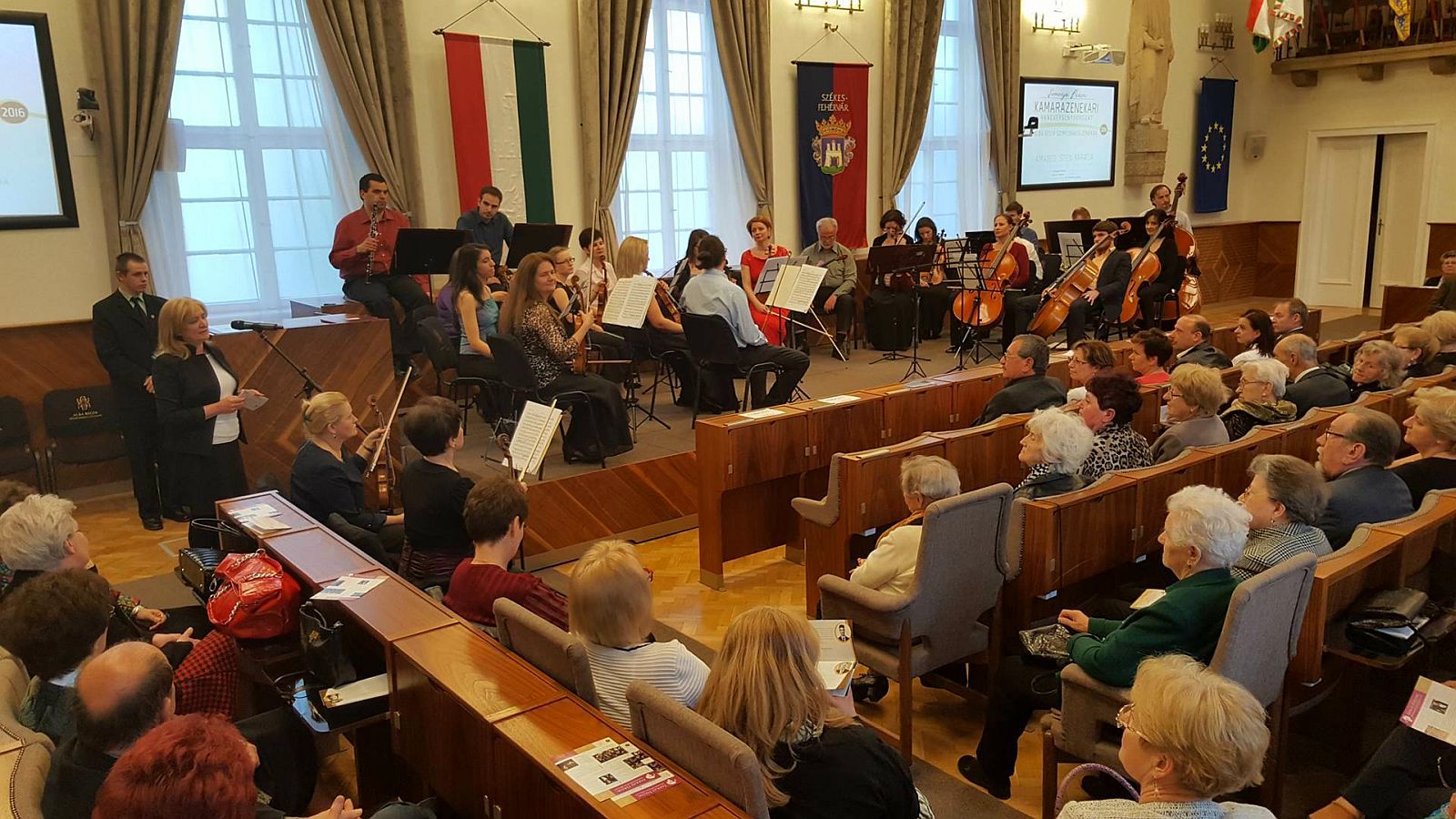 A kamarazenekari hangversenysorozat első koncertjén a város alpolgármestere Brájer Éva is köszöntötte a zeneszerető közönséget. Kösznetet mondott a zenekarnak, hogy Somorjai Feri bácsi előtt tisztelegve, a legendás telekis zenetanár nevét viseli a hangversenysorozat. Amikor 2013-ban a város felújította a Városháza Dísztermét az is cél volt, hogy nyitott legyen a fehérváriak előtt és koncerteknek is otthont adhasson.