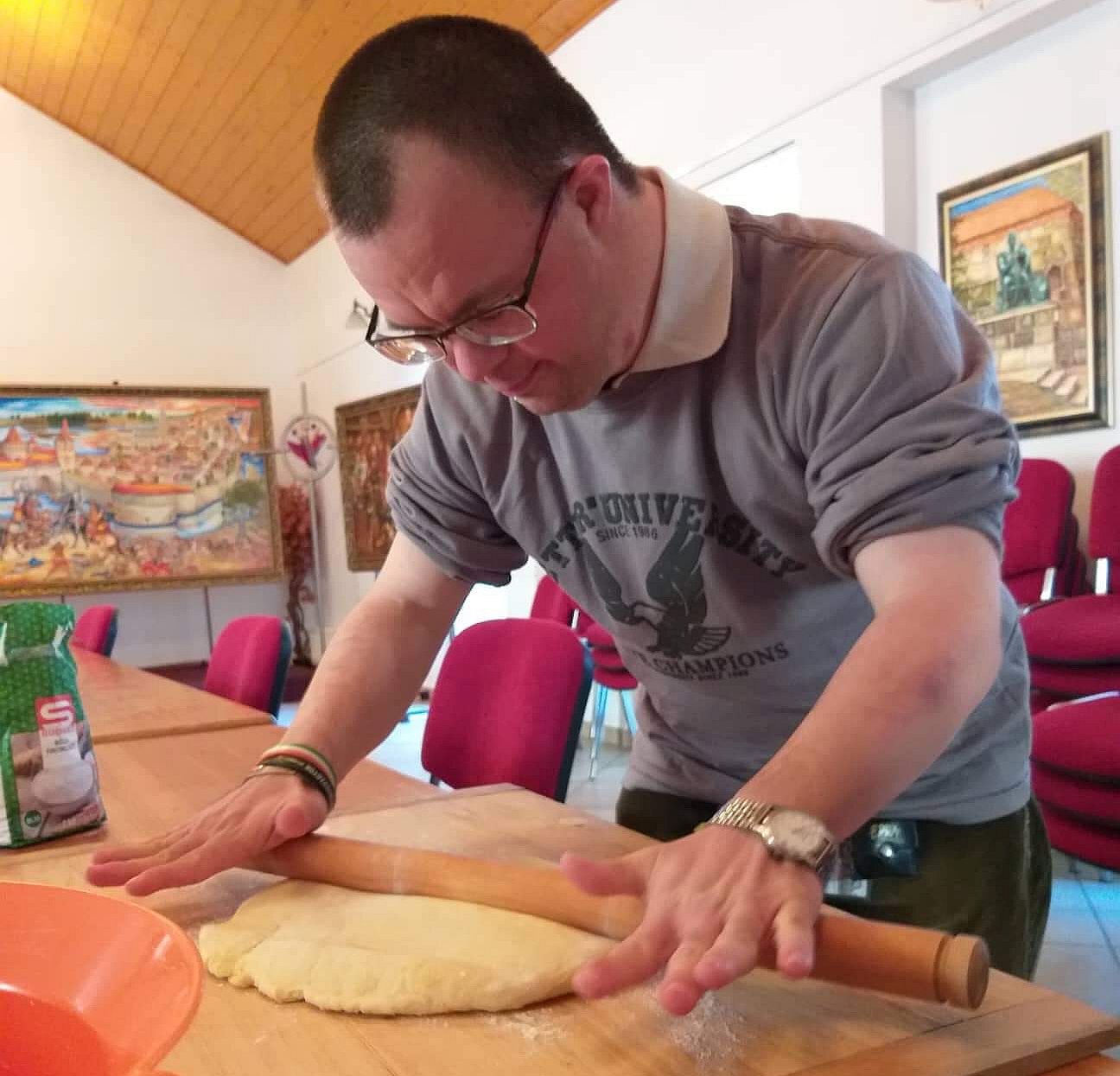 A kinevezett „főszakács” Anita volt, a többiek pedig ügyesen, lelkesen nyújtották, szaggatták és kenték meg tojással a pogácsákat, majd a jól sikerült ebédet ezután közösen fogyasztották el. A hat fiatal gondozotthoz Deák Lajosné önkormányzati képviselő is csatlakozott. A Fehérvári Nyugdíjas Polgári Egyesület és a Frim Jakab Képességfejlesztő Otthon most indított kapcsolatát szeretnénk folyamatossá tenni. A program a TOP 6.9.2 Helyi Közösségfejlesztés Székesfehérváron, Gasztronómiai kalandozások pályázat keretében valósulhatott meg.