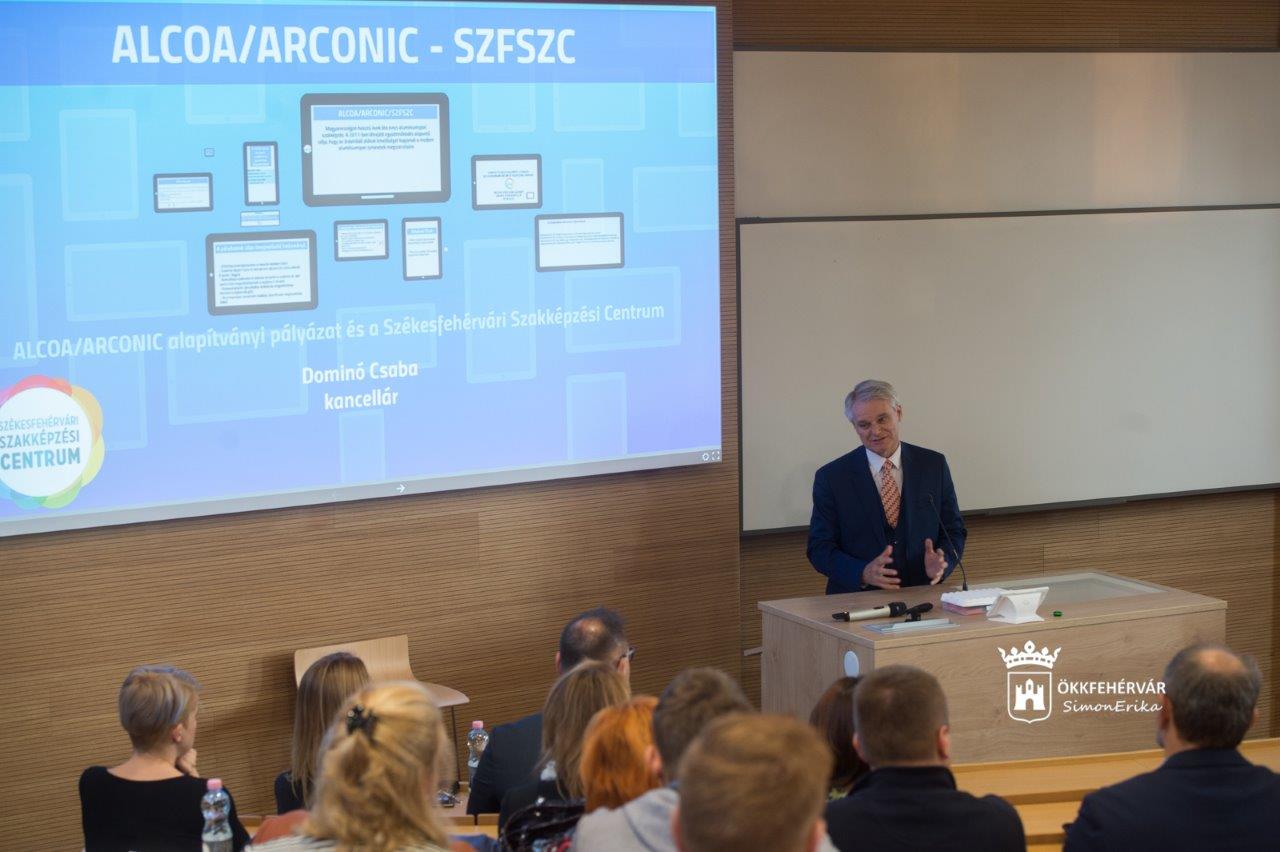 Dominó Csaba a Szakképzési Centrum kancellárja arról beszélt, hogy nagy öröm a szakképzés számára, amikor az ipar segíti az oktatást. Az Arconic évek óta támogatja azt, hogy a diákok minél jobban megismerjék az ipari környezetet és hasznosítható tudásra tegyenek szert. Beszélt arról is, hogy a Váci Mihály Ipari Szakképző Iskolában már 2011 óta az Alcoa, majd az Arconic Alapítvány támogatja az alumíniumipari képzést, hogy a diákok minél jobban megismerhessék az alumínium ipari technológiákat. A mostani pályázatban a Vörösmarty, a Váci, az Árpád és a Széchenyi vesz részt.