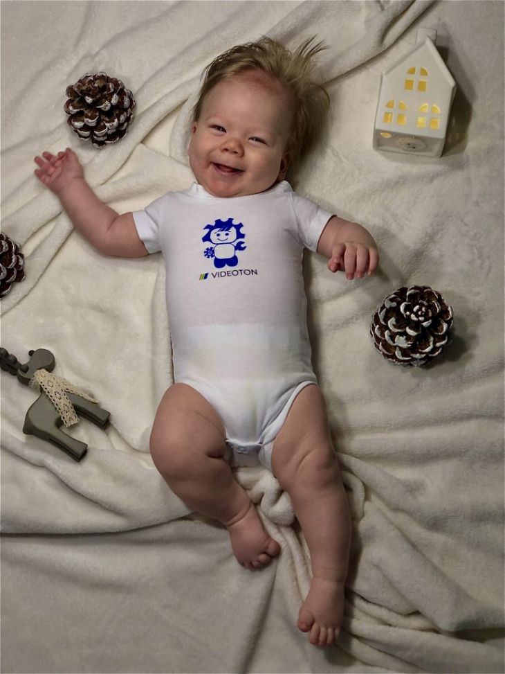 A vállalat pedig szívesen hozzájárul örömükhöz ezzel a kis csomaggal, amit minden VIDEOTON-os dolgozó igényelhet babájának. A manyós sapkával, bodyval és előkével, illetve nyuszis alvókával készült fotók ezután is láthatóak a cég Facebook oldalán.