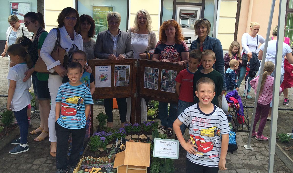 Idén már hatodik alkalommal rendezték meg Mosonmagyaróváron az “Apró kezek, csodakertek” elnevezésű gyermek kertépítő versenyt, melyen a rekordszámú nevező között az Arany János Iskola és a Göngyvirág Óvoda csapata is részt vett. A feladat egy 100cm x 120cm ágyásba a gyerekek által pedagógus vagy szülői segítséggel kigondolt és megalkotott fantáziakert kialakítása volt.