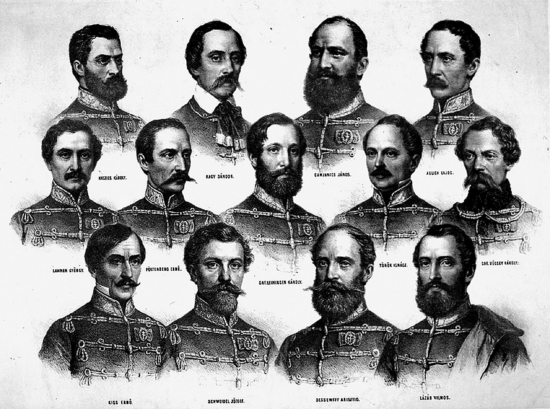 A kivégzett honvédtábornokok. Golyó általi halálra ítélték Kiss Ernőt, Schweidel Józsefet, Dessewffy Arisztidot és Lázár Vilmost. Bitófán végezték ki Poeltenberg Ernőt, Török Ignácot, Lahner Györgyöt, negyedikként Kneziæ Károlyt, majd Nagysándor Józsefet, Leiningen-Westerburg Károlyt, Aulich Lajost, Damjanich Jánost és végül Vécsey Károlyt. Vécseyhez hasonlóan az ön üknagyapjának is volt egy testvére, aki az ellenség oldalán harcolt.