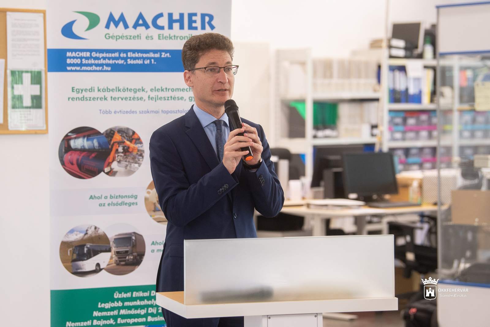 Köszöntőjében dr. Cser-Palkovics András polgármester kiemelte, hogy a Macher Zrt. alapja annak a gazdasági és ipari fejlődésnek, amely az elmúlt évtizedekben bekövetkezett Székesfehérváron.