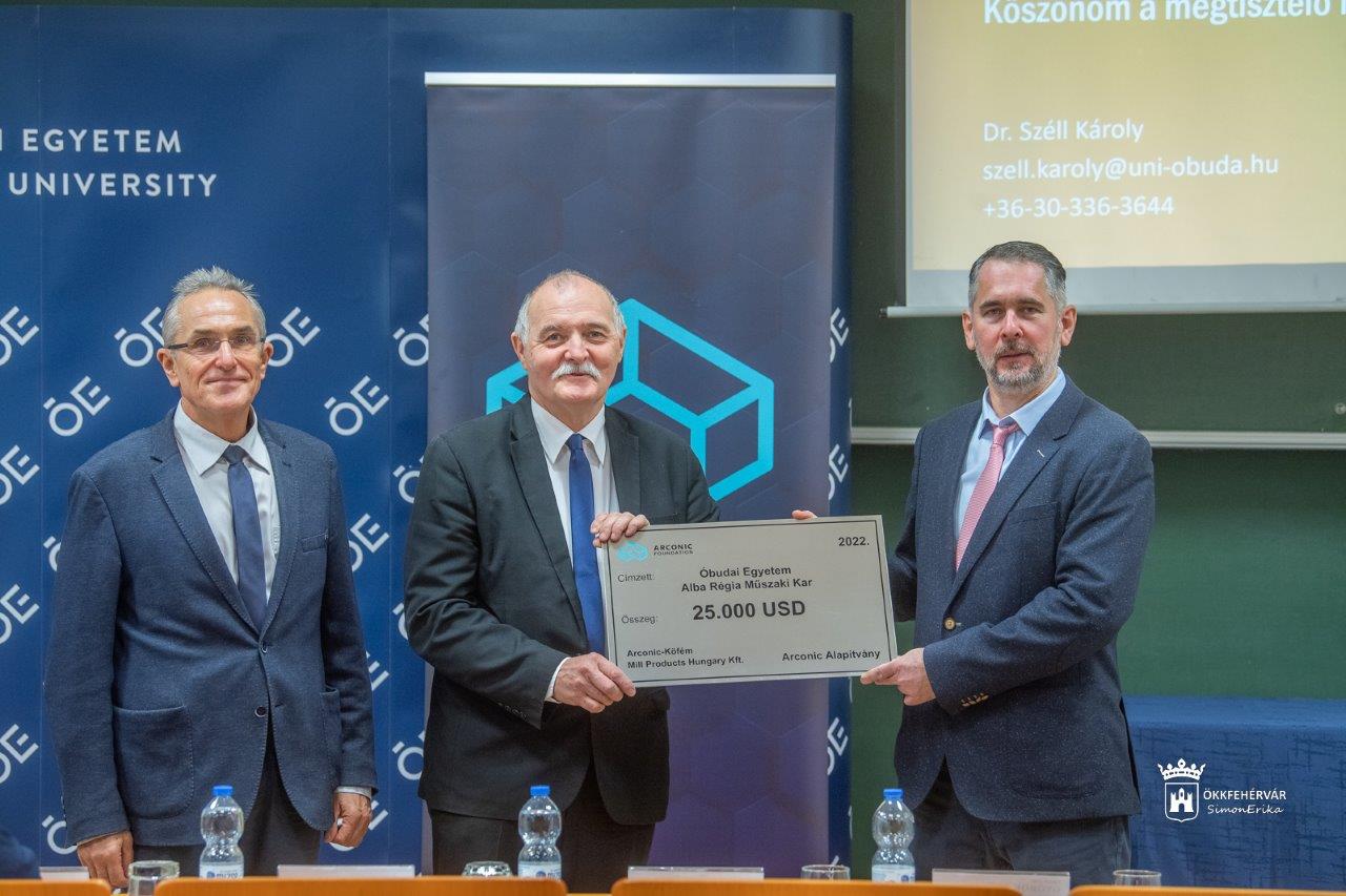 Balázs Gábor, az Arconic-Köfém Mill Products Hungary Kft ügyvezető igazgatója, gyárvezetője arról beszélt, hogy az Arconic Alapítvány nagyon tudatosan kezeli a támogatásokat. Kiemelt támogatási cél a környezetvédelem, a hátrányos helyzetűek és az őket gondozó szervezet segítése, valamint az oktatás – azon belül is a tudományos alapokon nyugvó, gyakorlatorientált mérnökképzés. Úgy érezték, hogy az Óbudai Egyetemen magas színvonalú munkája a továbbiakban is érdemes a támogatásra. A duális képzés által az egyetemről kikerülő, képzett fiatalok már az első munkanapjuktól képesek teljes értékű munkavállalóként dolgozni. A mérnökképzés igen tőkeigényes „játék”, hiszen folyamatos megújulást követel.