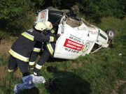 A Citroën bal hátsó kereke kitörött, a jármű pedig az út menti vízelvezető árokban fejtetőn landolt. A mentők két könnyebb sérültet szállítottak kórházba. A tűzoltók a járművek áramtalanítását végezték el, és a forgalmi akadályt képező Volkswagent letolták az útról.