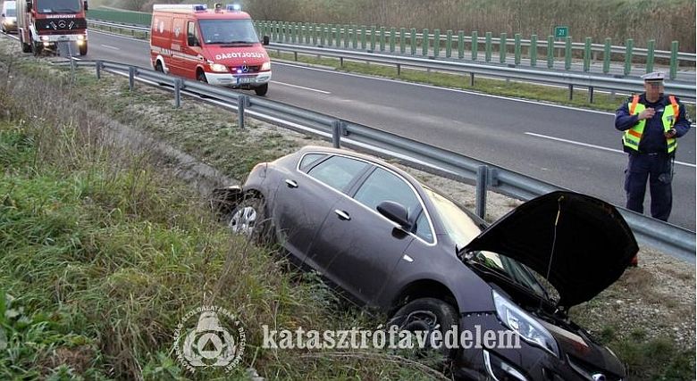Letért az útról és a vízelvezető árokban haladt tovább egy személyautó a 8-as út Székesfehérvárt elkerülő szakaszán, Csór mellett, november 13-án, a reggeli órákban. A gépjárművet egy betonból készült vízáteresz állította meg. Az autóban csak a sofőr tartózkodott, aki nem szorult be, a mentők tájékoztatása szerint könnyű sérülését szenvedett. A helyszínre érkező tűzoltók a jármú áramtalanítását végezték el.