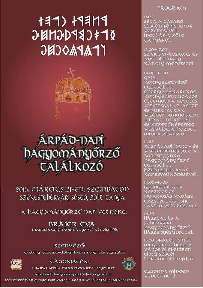 Árpád-napi hagyományőrző találkozót rendeznek március 21-én szombaton a Sóstó Természetvédelmi Területen, a Zöld Tanyán. A rendezvényt még Gáspár Attila honosította meg a Sóstón. A látogatókat idén is sok érdekes program várja a Gárdonyi Géza Művelődési Ház és Könyvtár Egyesület által szervezett programon.